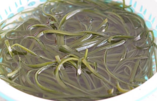 第一步 碗里放入适量的清水,然后将海带切丝,放在碗中泡一下,泡开之后捞出放在碗中